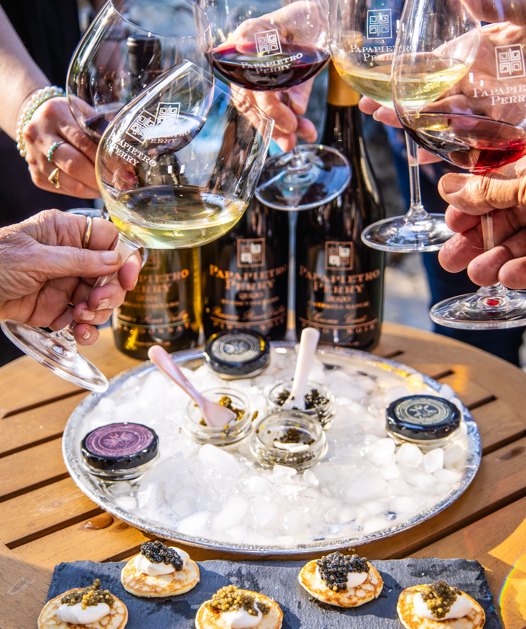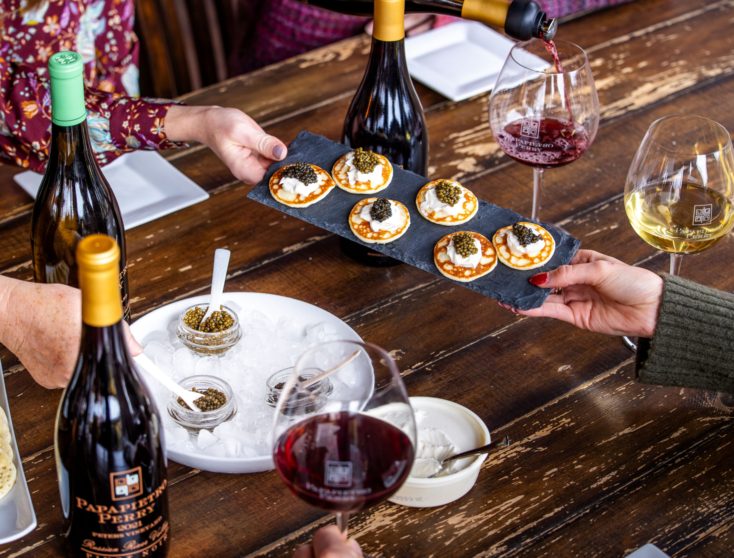 Step into a world of refined flavor and effortless luxury. This intimate experience pairs our award-winning wines with premium caviar from The Caviar Co. for an unforgettable journey of taste. Whether you join us at the winery or from the comfort of your home, the experience will leave you with a deeper appreciation for both! Our team has carefully crafted the perfect pairing of our wines and delicious caviars, along with the fixings, to have an incredible tasting here at the winery or from your couch.