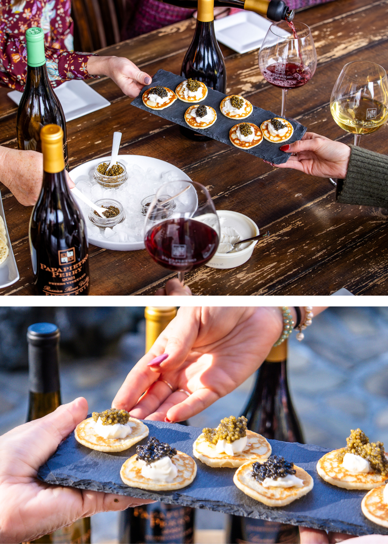 Step into a world of refined flavor and effortless luxury. This intimate experience pairs our award-winning wines with premium caviar from The Caviar Co. for an unforgettable journey of taste. Whether you join us at the winery or from the comfort of your home, the experience will leave you with a deeper appreciation for both! Our team has carefully crafted the perfect pairing of our wines and delicious caviars, along with the fixings, to have an incredible tasting here at the winery or from your couch.